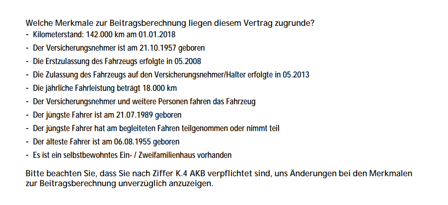 Hier sehen Sie eine Übersicht von individuellen Merkmalen, die in die Berechnung Ihres Tarifs einfließen.